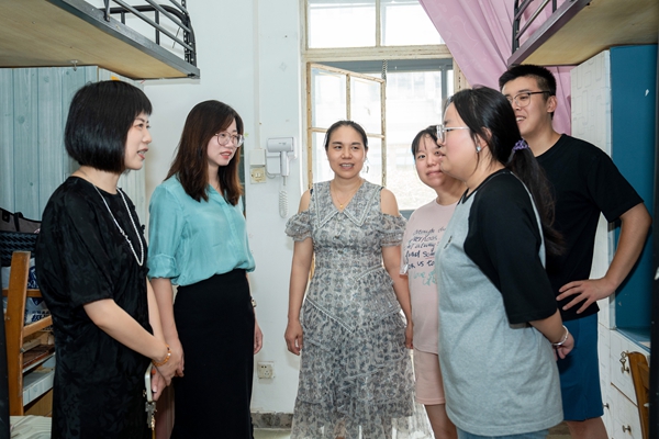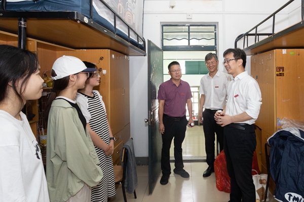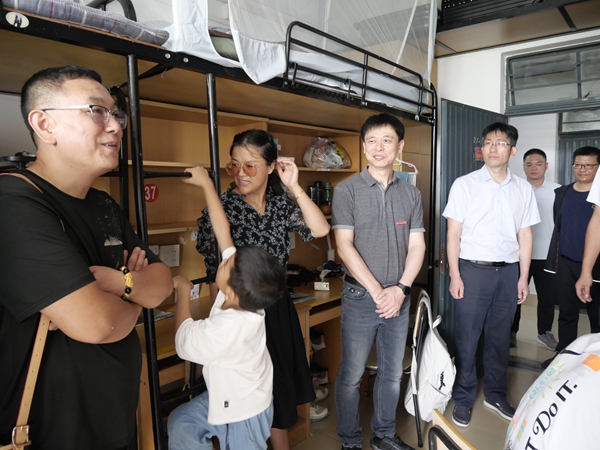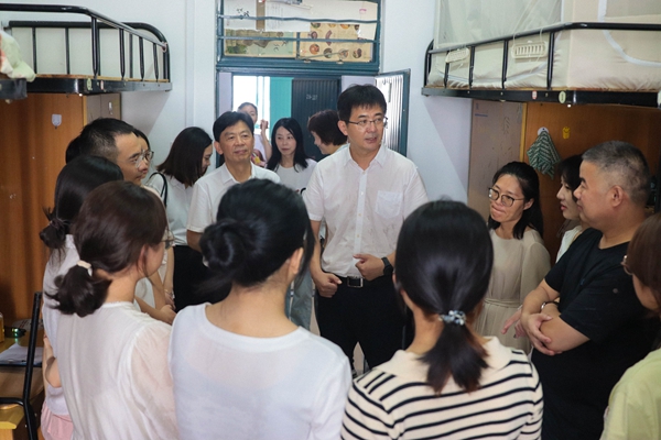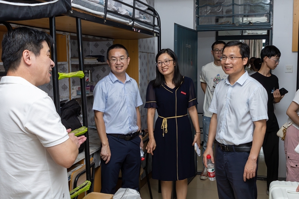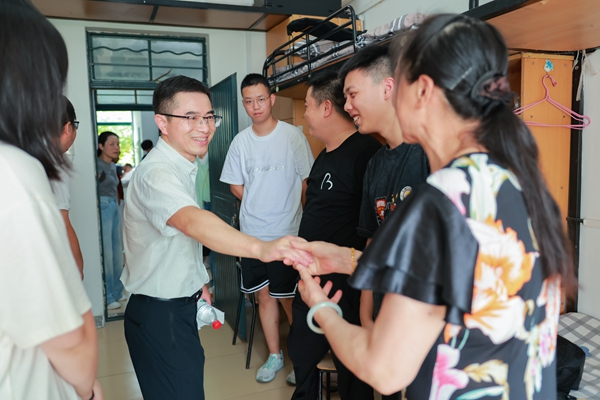 校领导们首先来到研究生公寓,询问了解新生报到情况,向现场的新生和家长表达了热烈的欢迎和亲切的问候。在各新生接待点,志愿者们一对一引导帮助新生们办理各项报到事宜,迎新工作有序开展。随后,校领导班子成员分别带队走访慰问了各联系学院的新生寝室。